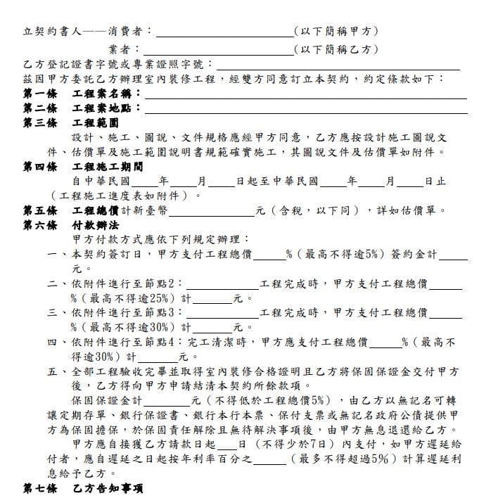 - 設計案 or 整體裝修 → 務必簽正式合約書!