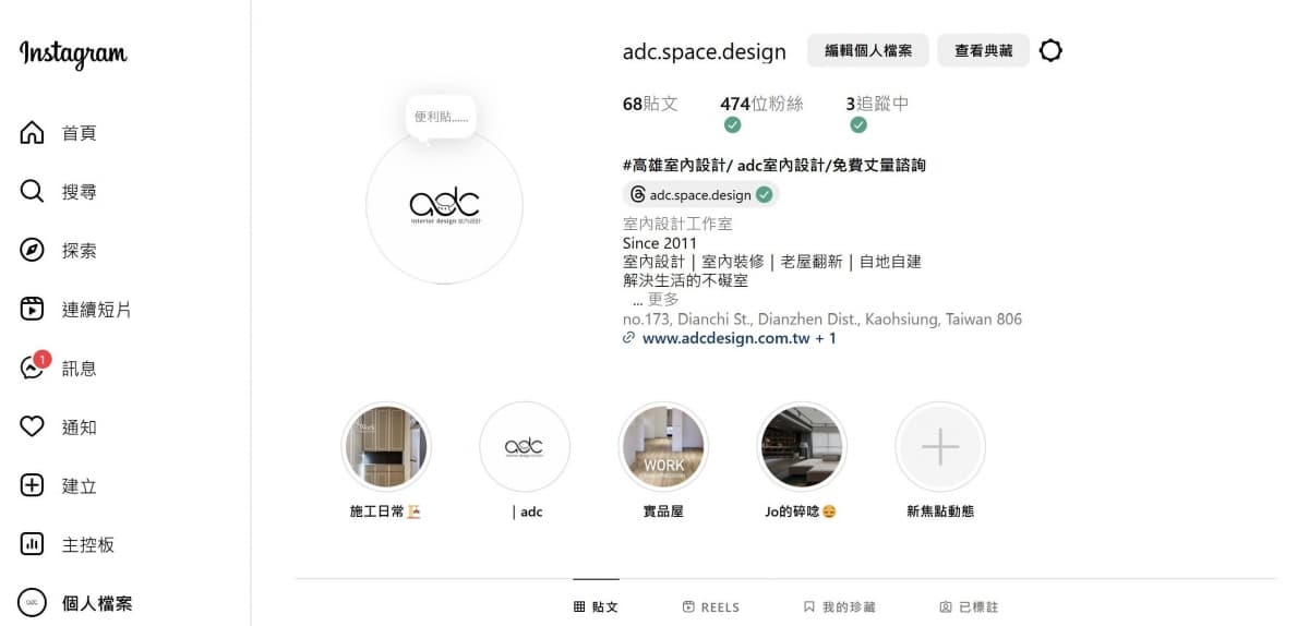 (ADC室內設計定期更新社群貼文與消費者互動)