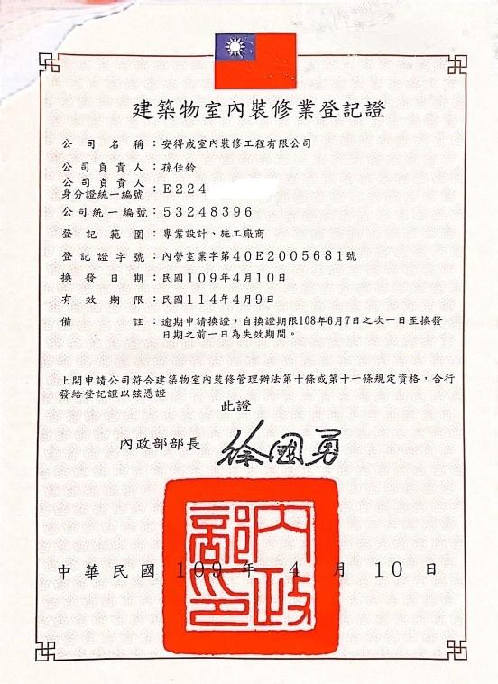 公司名稱也應包含「室內裝修」字樣,才是國家認證的專業室內設計裝修公司喔!