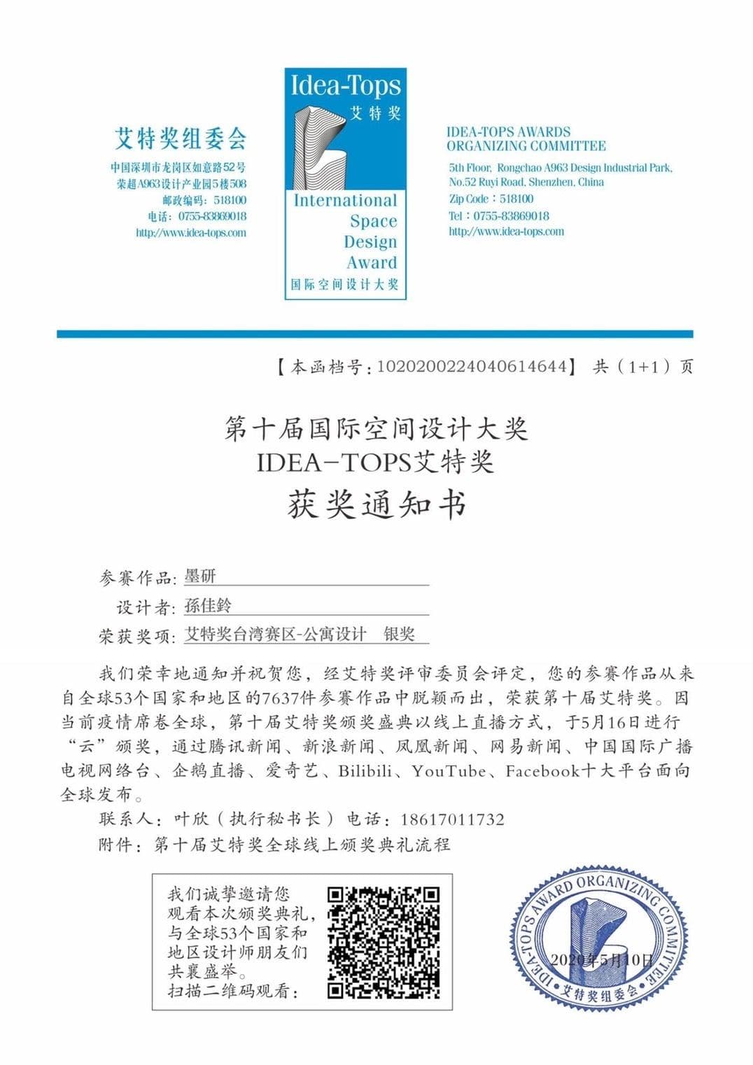 第一次,我們報名了比賽,很開心墨研獲得了義大利A’ Design Award & Competition和大陸艾特獎Idea-Tops的肯定,這讓我們更堅定了設計的信念,一路跌跌撞撞的過程也變成了最寶貴的經驗,我們會再接再厲,繼續在這路途上創造更好的作品。