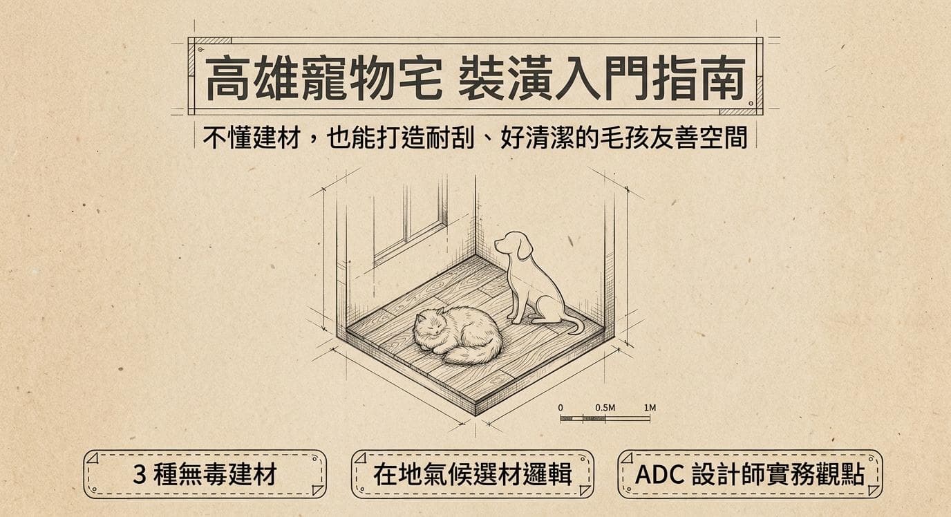 三種建材可以搭配使用,但在實際選購前,有幾個高雄飼主特別需要留意的眉角——尤其是在地氣候對防潮需求的影響,以及無毒建材認證對毛孩健康的重要性。
